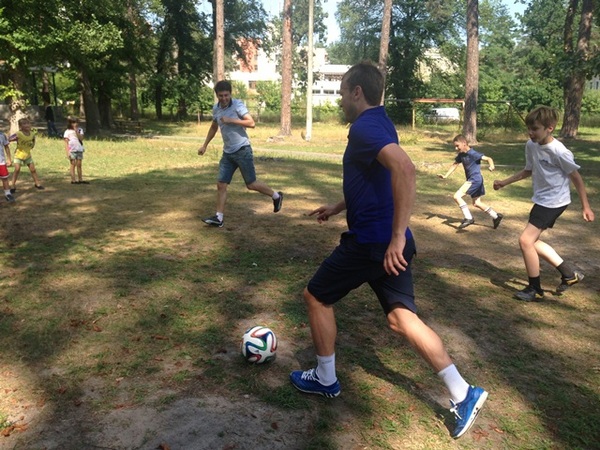 Футболисты и журналисты телепередачи «ПроФутбол» посетили детей-беженцев с востока Украины, пообщались с ними и сыграли в футбол. Также дети получили от гостей подарки.