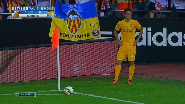 Во вчерашнем матче 2-го тура Примеры "Валенсия" - "Малага" (3:0) на ультрас-трибуне "летучих мышей" вывесили флаг Украины с эмблемой испанского клуба и надписью "Запоріжжя".