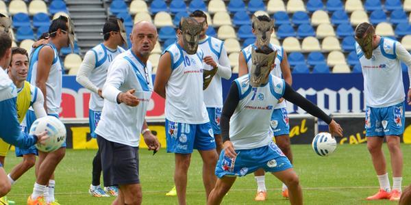 Футболисты мексиканской "Пуэблы" провели необычную тренировку, надев на себя маски собак.