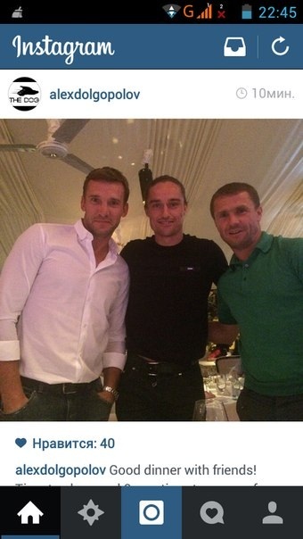 Первая ракетка Украины Александр Долгополов на своей персональной странице в социальной сети Instagram разместил снимок вместе со звездами украинского футбола Андреем Шевченко, который сейчас проходит тренерские курсы в Киеве и наставником «Динамо» Сергеем Ребровым: