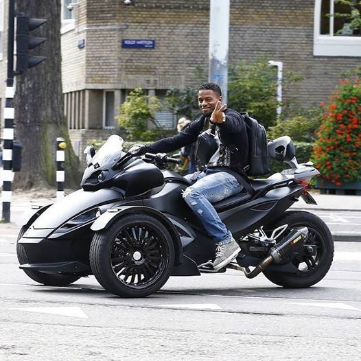 Полузащитник «Динамо» Джермейн Ленс похвастался тем, как катался на новеньком Cam-An (трицикл - трехколесный мотоцикл) в Амстердаме. Соответствующее фото он выложил на своей страничке в Фейсбуке.