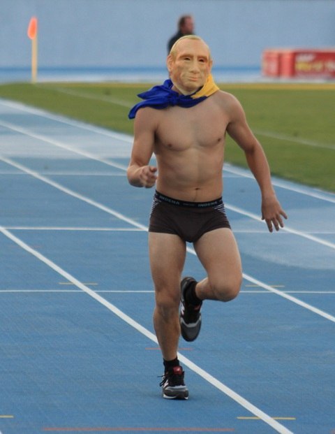 Во время матча прошлого тура в первой лиге между Зиркой и Александрией (0:0), один из ярых фанатов решил в оригинальный способ подбодрить публику. Парень в маске президента России Владимира Путина, в нижнем белье и с флагом Украины пробежал дорожками обновленного стадиона Зирка. Публика такой поступок оценила.