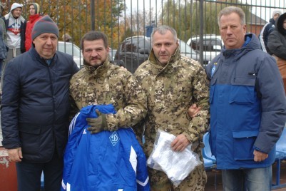 Бойцы спецбатальона «Айдар» Василий и Александр (по понятным причинам мы не называем их фамилии) по приглашению ФК «Динамо» (Киев) прибыли на стадион городка Счастливое, посетив игру лучших команд страны. Резонно, что целью визита был не только просмотр увлекательных матчей юных футболистов из Киева и Донецка. В рамках комплексной программы поддержки украинской армии и переселенцев из зоны АТО, которую клуб разработал и активно реализовывает в последние несколько месяцев, старший тренер ДЮФШ «Динамо» им.Валерия Лобановского Александр Ищенко вручил мужественным бойцам «Айдара» спортивную форму. Более подробно о проведенной акции рассказал Александр Алексеевич.