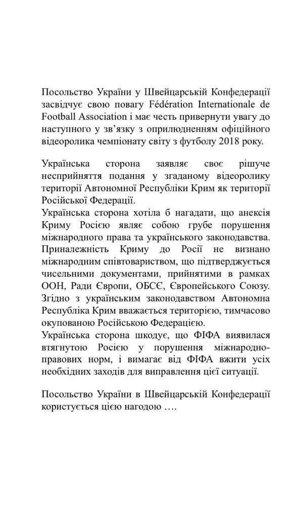 «Вибачення ФІФА - це добре. Але офіційний протест ми сьогодні оперативно надіслали. Для профілактики», - написав Клімкін.