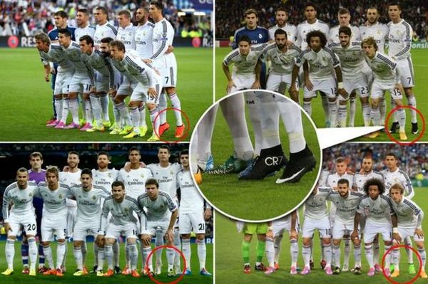 Британский таблоид The Mirror подметил интересную особенность: форвард "Реала" Криштиану Роналду на последних командных фотографиях перед матчами за клуб встает на носки. Причина, по которой 29-летний португалец это делает – хочет казаться выше, обратить внимание на спортивную обувь, или просто привлечь внимание, – неизвестна. Отметим, что рост футболиста составляет 185 сантиметров.