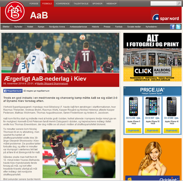 "В той час, як команда Кента Нільсена переживає труднощі в національному чемпіонаті, в Лізі Європи "Ольборг" виглядає інакше. Після ляпасу 0:6 від "Стяуа" в Бухаресті, "Ольборг" знайшов свою гру, яка нагадує гру минулого золотого сезону. В першому матчі проти "Динамо", яке зараз йде першим в чемпіонаті України, данцям завдяки в тому числі класній грі Ларсена вдалося взяти очки. Але сьогодні було не так… "Ольборг" досить добре почав і на старті матчу мав кілька моментів для того, щоб відкрити рахунок. Але час ішов, "Динамо" поступово перетягувало ковдру ініціативи на свій бік. Вже в другій половині тайму українські атаки накочувались на ворота Ларсена одна за одною. Голкіпер нас рятував, іноді ж різкості не вистачало українцям, які збиралися помститись за поразку 0:3 двотижневої давності"...