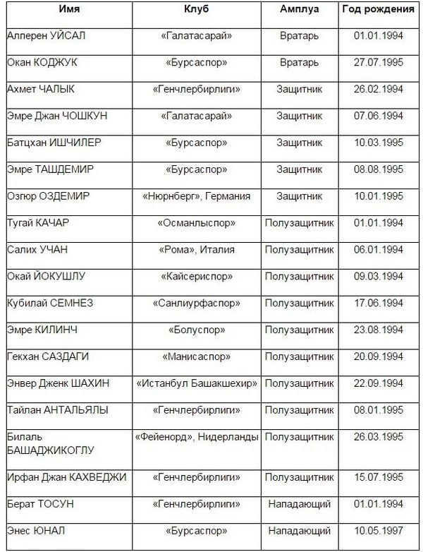 Турция (U-21): кто пойдет на Украину?