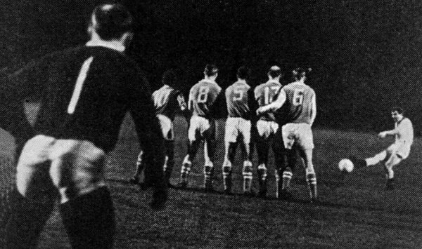Видя, что вратарь отодвигается все дальше вправо от него - так, чтобы и из-за стенки что-то видеть, Серебряников просил Мунтяна тоже стать в строй стенки соперника, совсем закрыть его от взора Сцанвальда. Взяли и Мунтяна под контроль. Вратарю, естественно, чтобы хоть что-нибудь видеть, пришлось буквально забиться в самый левый угол. Это была тонкая и хитрая игра, когда вратарь, сам того не сознавая, слепо выполнял волю киевлянина. Таким образом, правый сектор ворот оказался совершенно свободным. И хоть на пути к нему стояла «стенка», Серебряников знал, что это не помеха, мяч пройдет над ней.