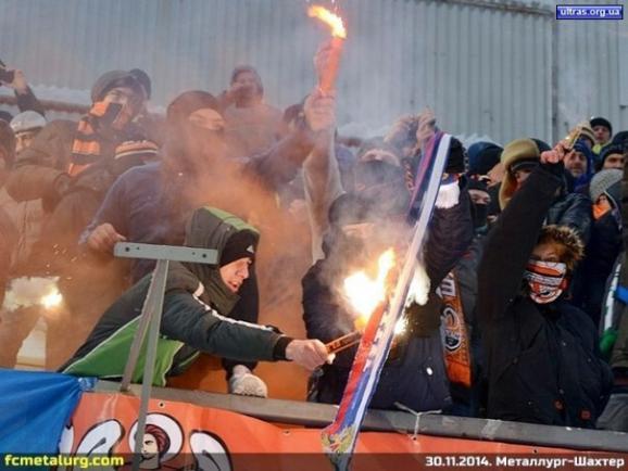 Під час матчу 14-го туру УПЛ проти запорізького "Металурга" (4:0) фани "Шахтаря" спалили прапор "ДНР".