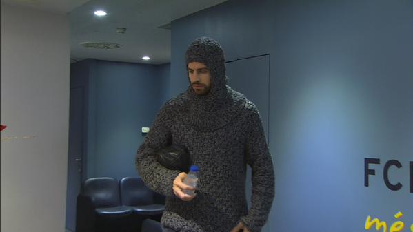 На Пике был надет свитер, напоминающий доспехи средневекового рыцаря.