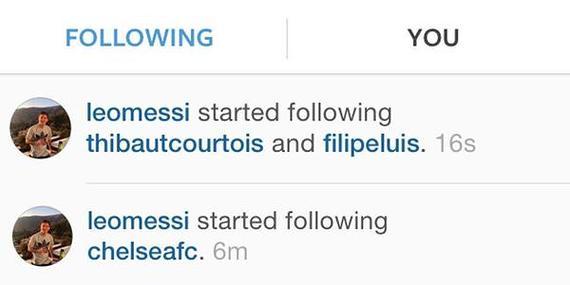 Форвард «Барселоны» Лионель Месси подписался в инстаграме на аккаунты английского «Челси», а также игроков «синих» – бельгийсокго голкипера Тибо Куртуа и бразильского защитника Фелипе Луиса.