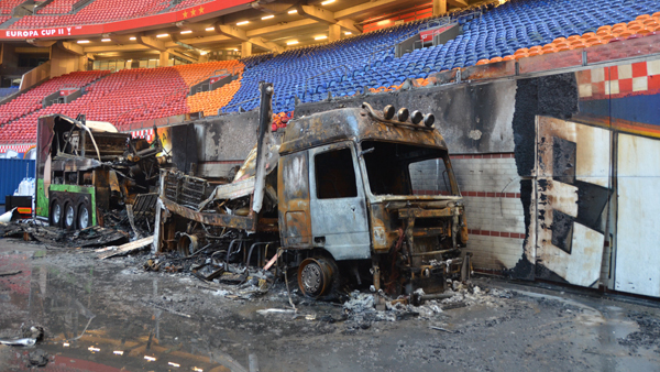 Возгорание вспыхнуло в грузовике, который перевозил искусственный газон. Огонь повредил некоторые граффити на стене, пострадали и пара сидений на «Арене», а сам грузовик выгорел дотла. Никто из работников стадиона не пострадал.