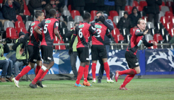 Футболисты французского "Генгама" выходят на поле НСК "Олимпийский", чтобы провести тренировку перед завтрашней игрой 1/16 финала Лиги Европы с киевским "Динамо".