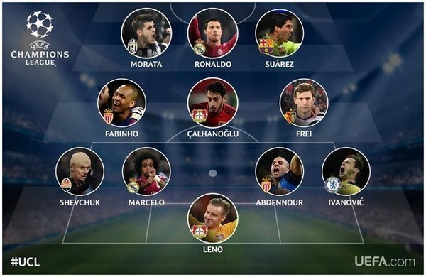 В символическую сборную по итогам первых матчей 1/8 финала Лиги чемпионов вошли защитник "Шахтера" Вячеслав Шевчук и по два игрока "Реала", "Монако" и "Байера".