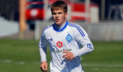 Левый защитник молодежной команды "Динамо" Игорь Нагорный со штрафного посылает соперника в нокдаун, затем наносит еще один удар, но мяч летит выше перекладине в матче "Динамо" - "Металлист" 28 февраля 2015 года.