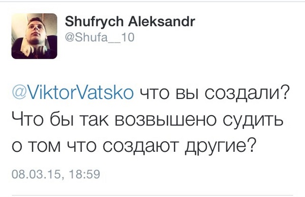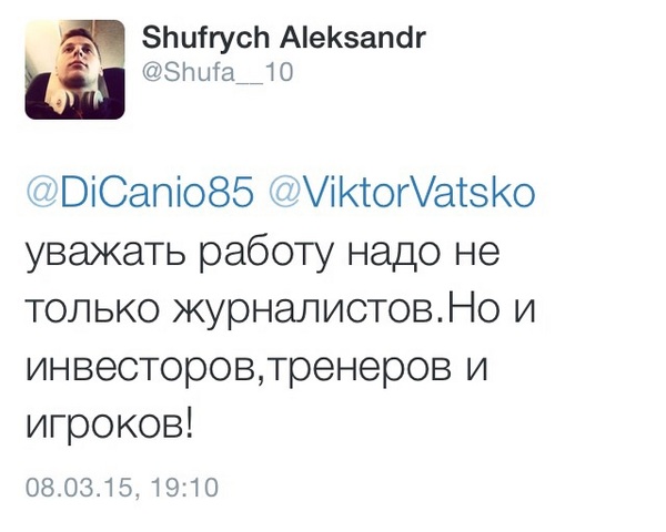 Після недільного матчу «Ворскла» — «Говерла» із коментатором поєдинку стосунки захотів з’ясувати віце-президент ужгородського клубу Олександр Шуфрич. Міг у приватному порядку, в телефонному режимі, але вирішив, так би мовити, на весь білий світ, через соцмережу Твіттер.