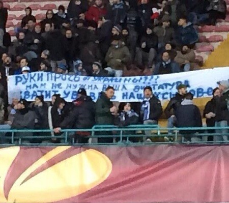 Во время первого матча 1/8 финала Лиги Европы «Наполи» – «Динамо» Москва (3:1) болельщики хозяев вывесили баннер в поддержку Украины.