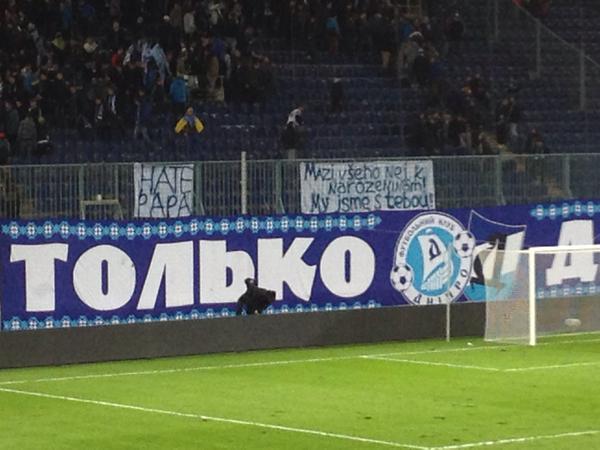Фанаты днепропетровского «Днепра» на домашнем матче против запорожского «Металлурга» (1:0) вывесили баннер со словами «Hate Papa» в адрес новобранца команды сенегальца Папы Гуйе.