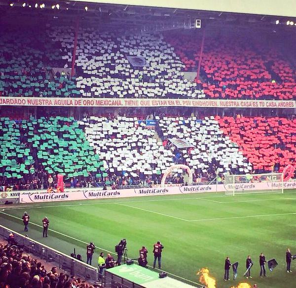 В воскресенье ПСВ одержал домашнюю победу над «Гронингеном» со счетом 2:1. Перед игрой болельщики лидера чемпионата Голландии выложили на трибуне мозаику с флагом Мексики и разместили баннер с обращением к Гуардадо на испанском языке: «Андрес Гуардадо – наш мексиканский беркут. Ты должен быть с ПСВ. Наш дом – твой дом, Андрес».