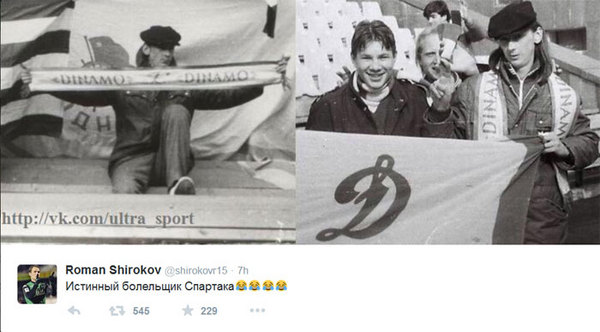 В ответ Широков, права на которого принадлежал красно-белым, оставил в своём «твиттере» сообщение «Истинный болельщик „Спартака“, прикрепив к нему фотографии, на которых запечатлён Федун с динамовской символикой.