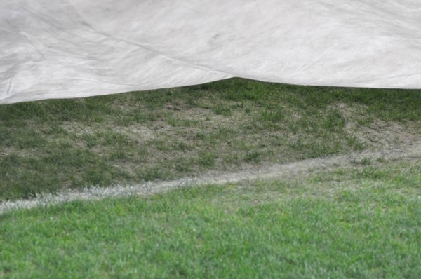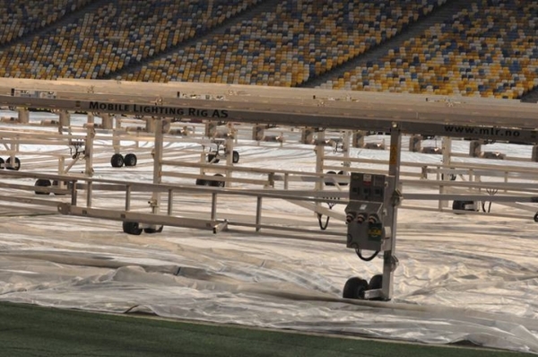 Сам же газон був укритий спеціальним "ковдрою", через який його продовжують обігрівати за допомогою системи Mobile Lighting.