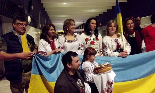 Но более приятным было видеть, как встречали украинцев в Севилье. Жители местной украинской диаспоры организовали просто прекрасный прием, встречая футболистов в вышиванках и с караваем. Такого приема футболисты явно не ожидали. Сами же испанские украинцы настроены оптимистично: в нашу сборную верят, на стадион придут, а также ждут группы сине-желтых болельщиков из других близлежащих городов.