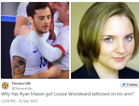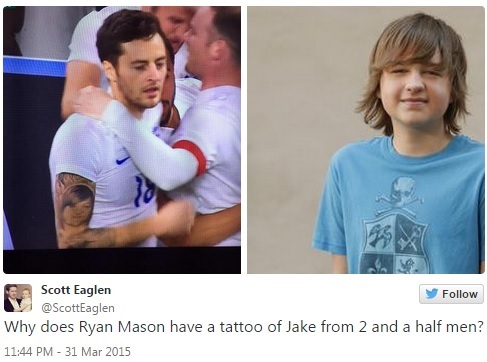 Райан Мейсон запомнился болельщикам в матче против сборной Италии (1:1) не только дебютом в составе англичан, но и творчеством на своей руке.