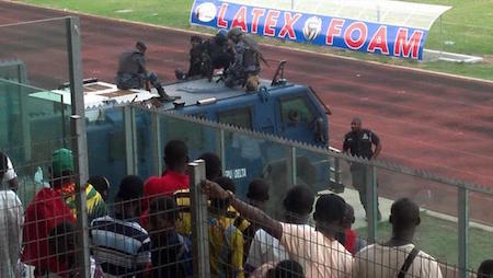 В Гане полиция эвакуировала проигравших игроков со стадиона на бронетранспортере (+ФОТО)