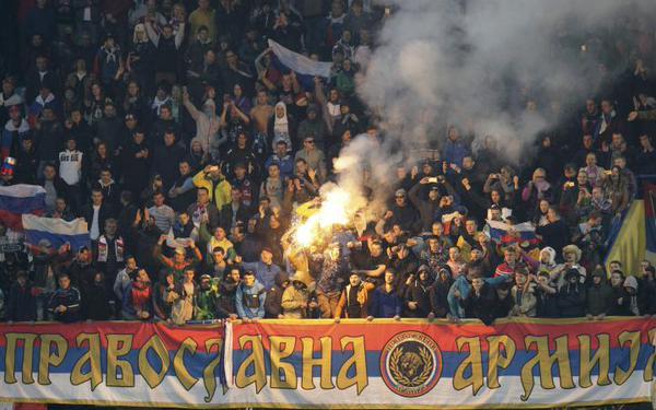 Матч, состоявшийся 27 марта, был отменён во втором тайме из-за поведения болельщиков хозяев. Уже на первой минуте матча фанаты попали файером в голову вратарю сборной России Игорю Акинфееву, который покинул поле на носилках. После матча РФС в УЕФА был направлен протест на решение о возобновлении встречи после инцидента с Акинфеевым.