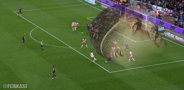 На 33-й минуте Лионель сместился с правого фланга атаки, вошел в штрафную и в блестящем стиле нанес обводящий удар в дальний угол. Позже стало понятно, как нападающему удался удар по такой траектории. Все дело в новой прическе звезды Реала Криштиану Роналду, наложив которую на момент удара Месси все становится ясно.