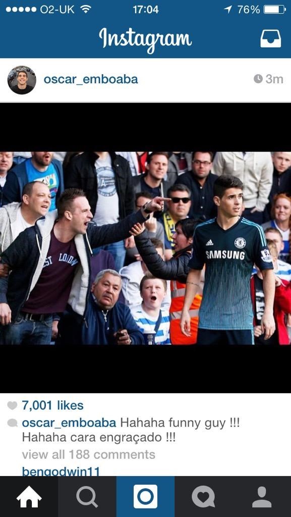 Оскар посмеялся над болельщиком КПР в инстаграме (+ФОТО)