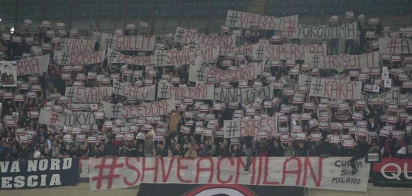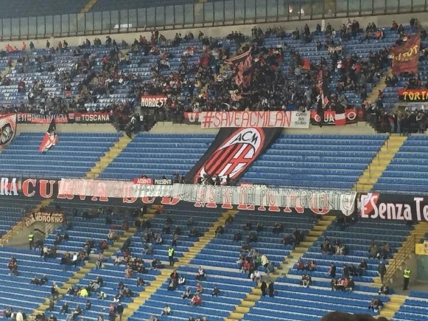 Во время матча Серии А против "Сампдории" тифози "россонери" держали в руках плакаты с надписью "продается", а также развернули баннеры с именами легенд клуба.