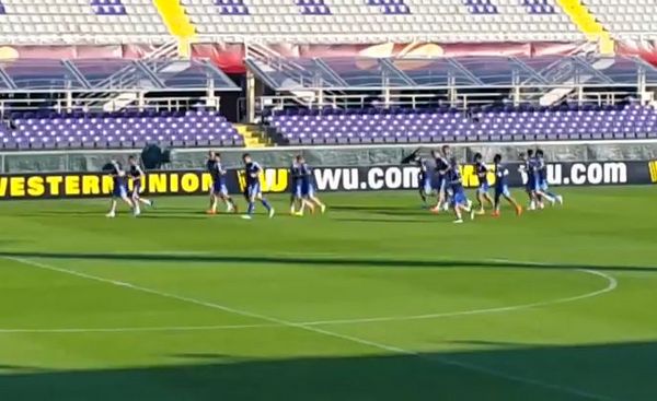 Динамовцы совершают пробежку на стадионе "Артемио Франки" перед игрой Лиги Европы с "Фиорентиной".