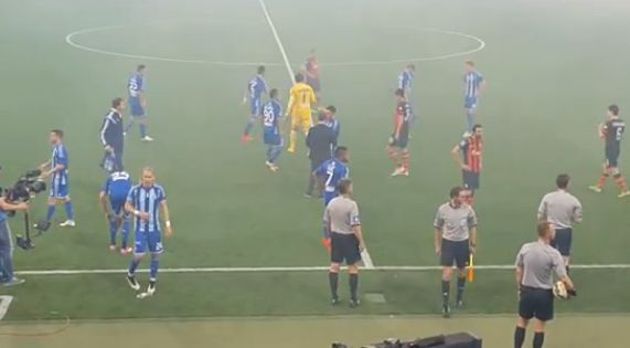 Судья матча "Шахтер" - "Динамо" Анатолий Жабченко остановил игру из-за дымовой завесы на поле.