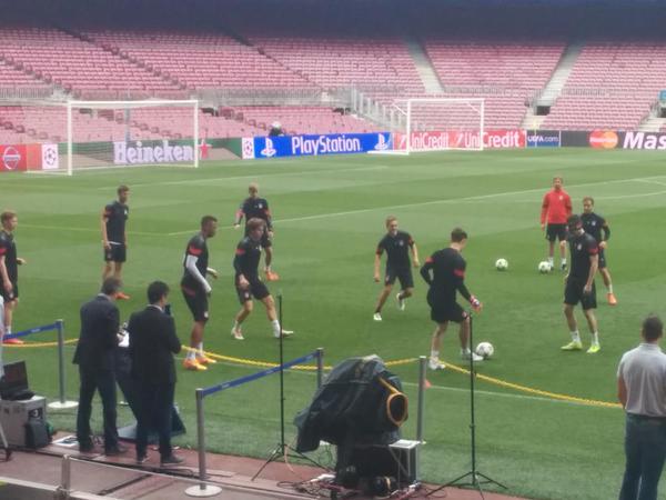 Нападающий "Баварии" Роберт Левандовски в преддверии первого матча 1/2 финала Лиги чемпионов с "Барселоной" тренируется общей группе. Как сообщает Diario Sport, поляк занимается в защитной маске.