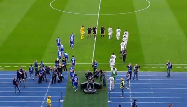 Игроки донецкого "Металлурга" и киевского "Динамо" выходят на матч 23-го тура чемпионата Украины.