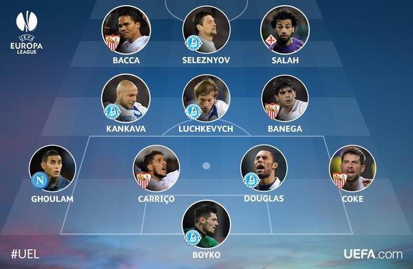 Сразу пять игроков «Днепра» попало в символическую сборную полуфинала Лиги Европы.