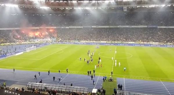 Игроки киевского "Динамо" празднуют свое 14-е чемпионство на НСК "Олимпийский" после победы над днепропетровским "Днепром".