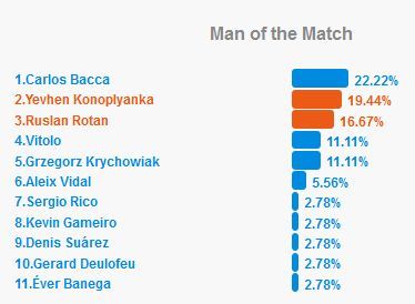 На данный момент в опросе лидирует нападающий Карлос Бакка. Следом за ним идут Евгений Коноплянка и Руслан Ротань.