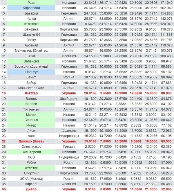Ни один из финалистов Лиги Европы сезона 2014-2015 уже не мог подняться выше в рейтинге клубов УЕФА. «Севилья» не могла догнать итальянский «Милан», а «Днепр» - не дотягивался до французского «Марселя». И независимо от исхода финального матча, как мы уже писали ранее, «Днепр» так или иначе начнет сезон с 29-й строчки.