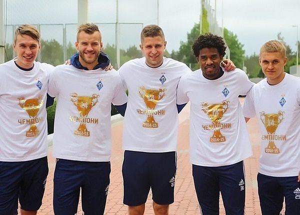 "Начинаем празднование чемпионства Украины сезона 2014/2015 в памятных футболках", - подписал фото Бетао.