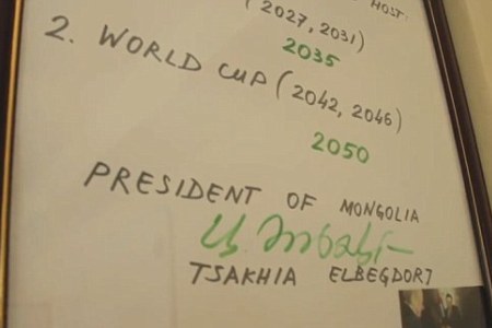 Данное заявление Блаттер сделал на встрече с участием действующего президента Монголии Цахиягийна Элбегдоржа, после чего обе стороны подписали символический документ, подтверждающий наличие предварительной договоренности о проведении в стране не только ЧМ-2050, но и Кубка Азии в 2035 году. К безумному шагу швейцарца вынудило желание местной федерации отдать свой голос на выборах президента ФИФА не Зеппу, а его главному конкуренту Мохамеду бин Хаммаму.