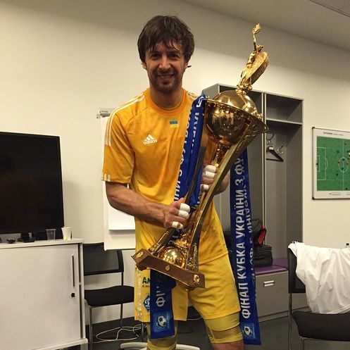 "Добрая традиция. Почти год назад я держал этот кубок в своих руках!!! И вот опять мы обладатели Кубка Украины!!! Спасибо нашим болельщикам!!!", - написал голкипер киевлян в своем Instagram и прикрепил фото.