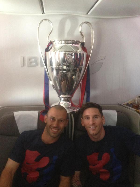 Аргентинский футболист "Барселоны" поделился в Твиттере фото с Месси и Кубком чемпионов.