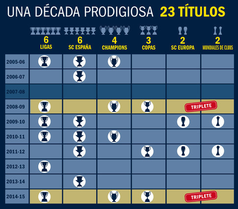 Лучшая команда последнего десятилетия далеко позади оставила своего извечного соперника из Мадрида, у которого только 10 трофеев.