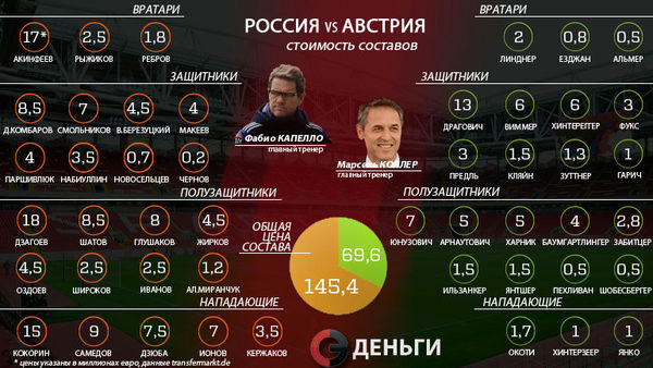 Россия - Австрия: чей состав дороже