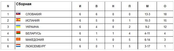 9 октября. Македония – Украина, Словакия – Беларусь, Испания – Люксембург.