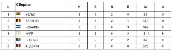 В этой группе конкурентов команде Фоменко не наблюдается. Израиль, Кипр, Босния-Герцеговина уже потеряли достаточно и, учитывая оставшийся календарь, терять продолжат – как в очных встречах, так и на приемах у фаворитов.