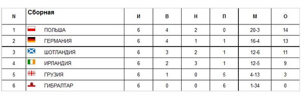 Германию сложно не расценивать как главного претендента на первое место – даже несмотря на ее минимальное отставание от Польши. В этом разрезе для нас было бы крайне нежелательно, если бы резко прибавила Шотландия. Проиграв ей в Глазго и уступив бундестим в ближайшем туре, поляки еще могут стать третьими, а их обойти в заочном споре будет куда сложнее. Потому, да простят нас наследники Уильяма Уоллеса, осенью мы не будем на их стороне. И пусть не расстраиваются: Ирландия, которой еще играть и в Германии и в Польше, вряд ли покинет четвертую строчку.