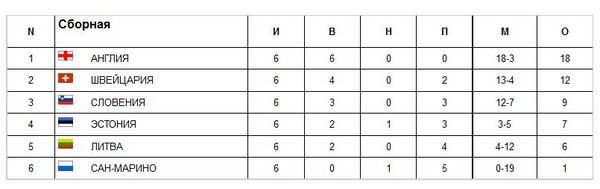 9 октября. Англия – Эстония, Словения – Литва, Швейцария – Сан-Марино.